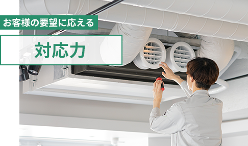 当社の強み、一つ目は対応力です。お客様の多様なご要望にお応えするために、豊富な技術力と経験、知識を持った優れた有資格者の社員が多数在籍しています。