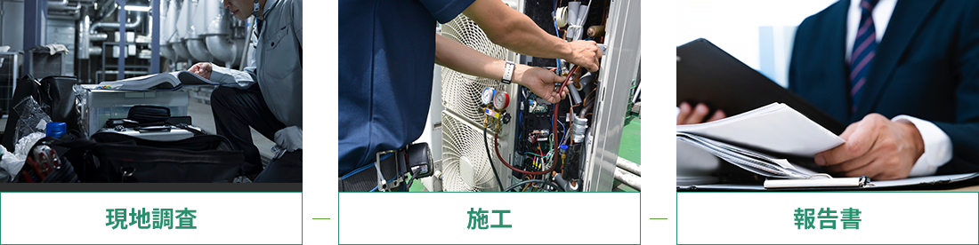 当社の二つ目の強みとして、施工から報告書作成までの一貫したプロセスで迅速かつ効率的に作業を行う、業務体制があります。